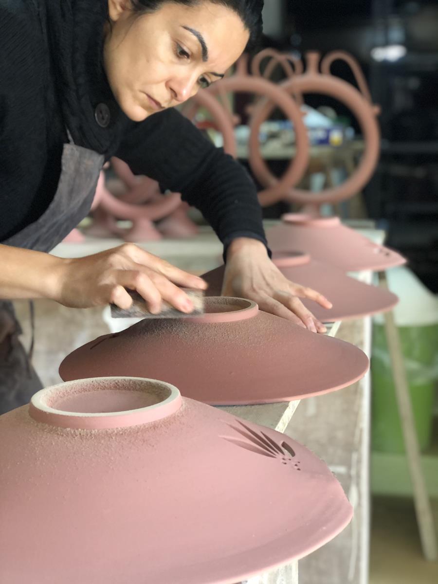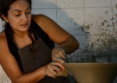 Sul tornio la terra prende forma, plasmata dalle mani come in un istinto primordiale. Il contatto crudo con la materia che attraverso le mani arriva dritto al cuore.