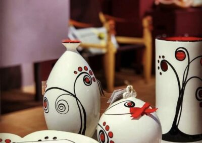 La produzione di Pina Corriga propone diverse linee di prodotti per la tavola e complementi d’arredo, dallo stile unico e inconfondibile. La tradizione, i colori, i simboli della sua amata Sardegna, terra d’origine alla quale è profondamente legata, sono fonte d’ispirazione per le sue collezioni.
